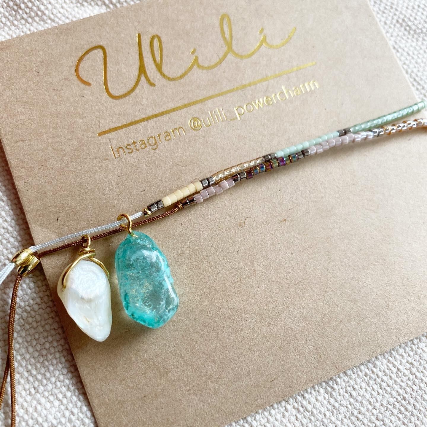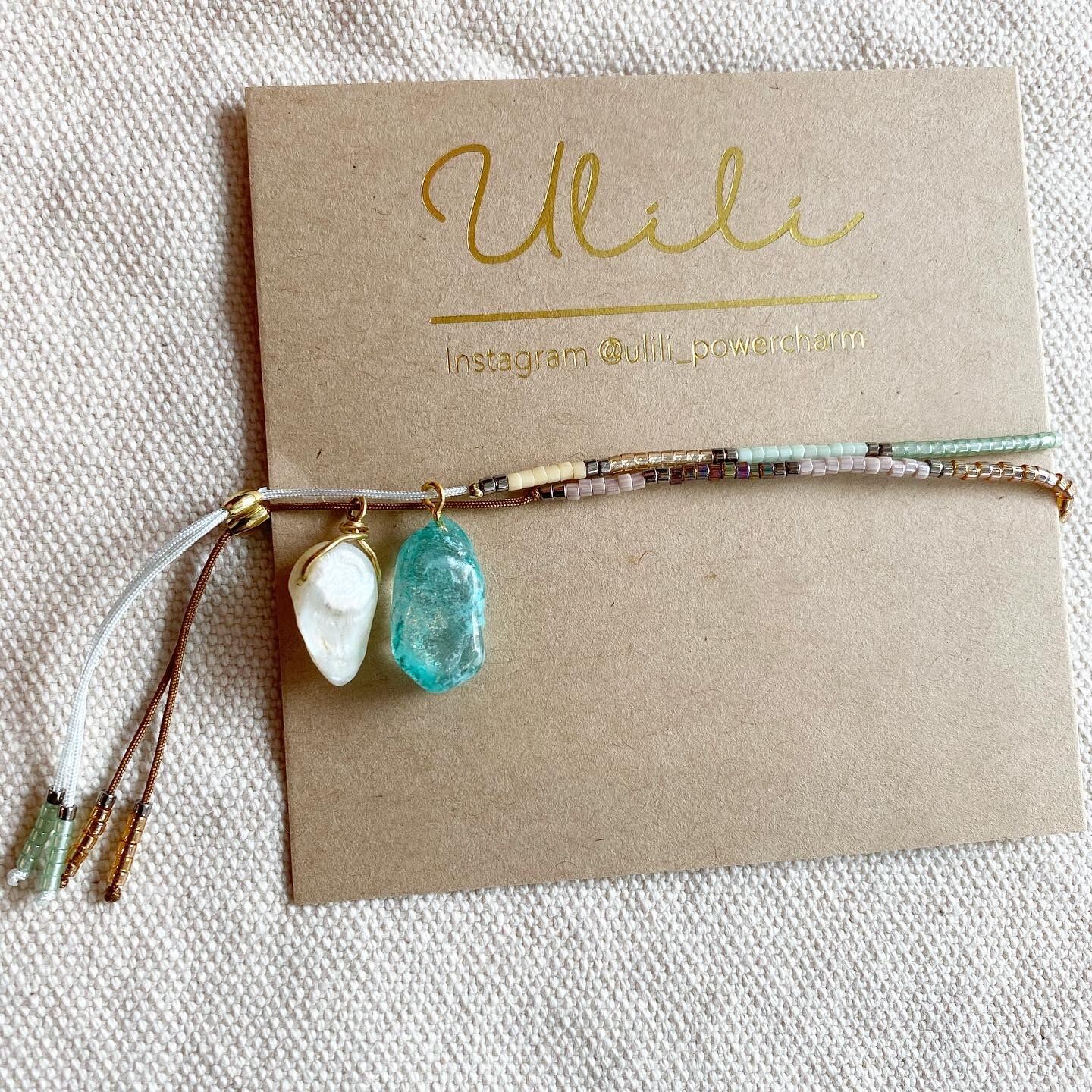 POWER CHARM 二連ビーズブレスレット ▶︎ミントグリーン×ナチュラルウッド