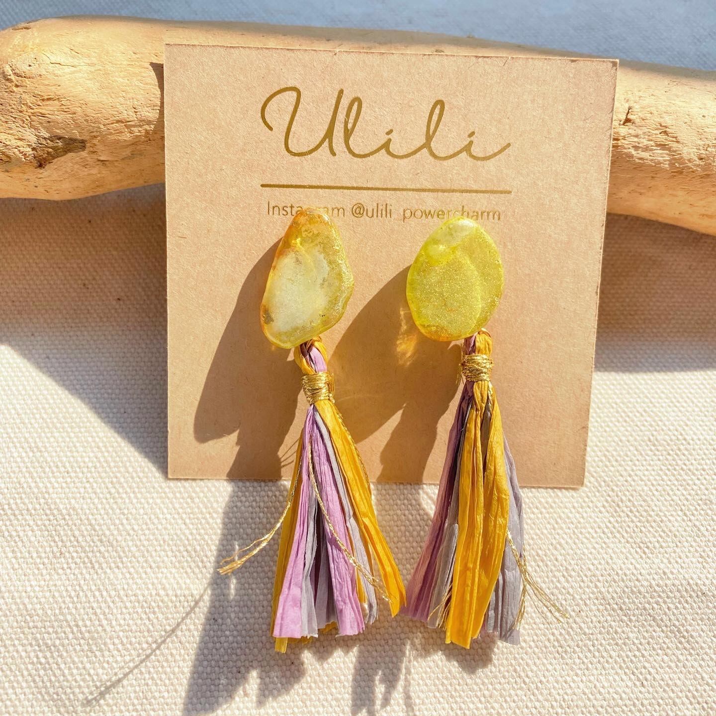 POWER CHARM ヘンプヤーンタッセルピアス shooting star(黄)
