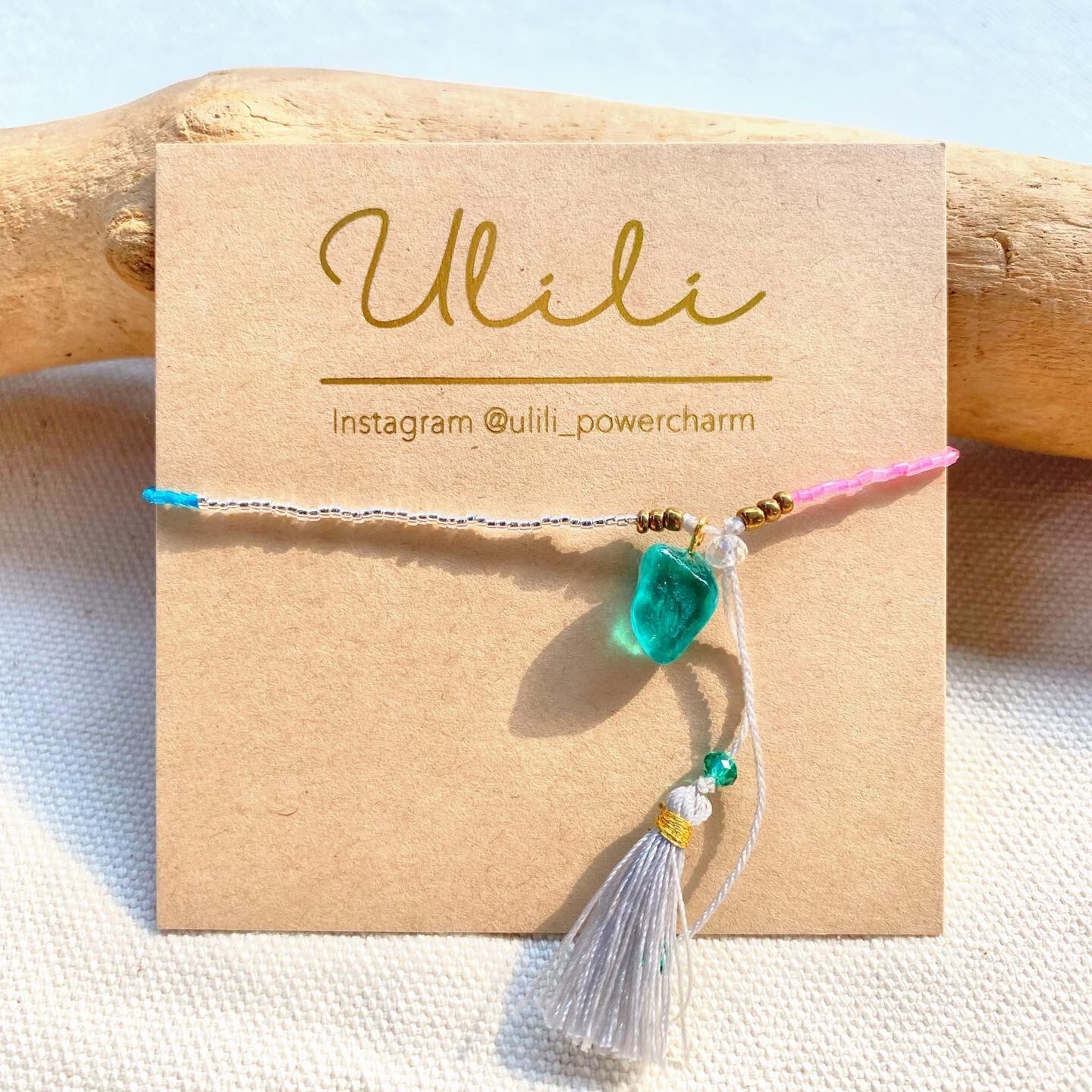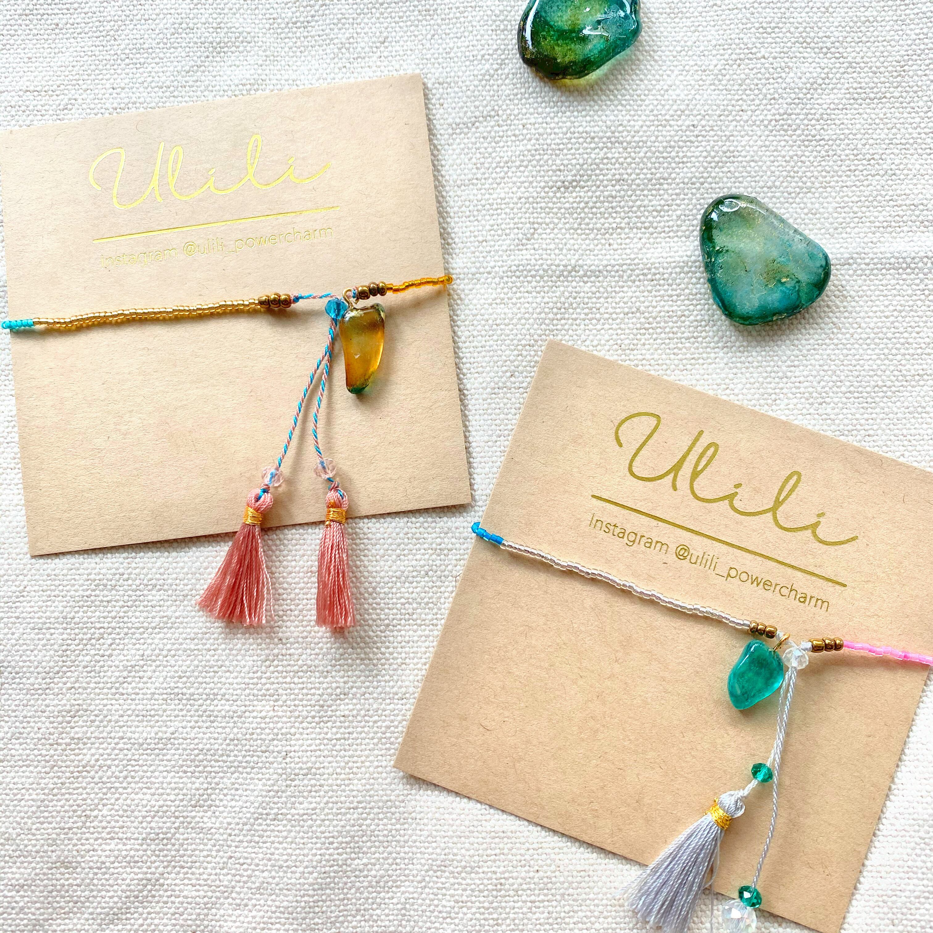 美しい色のPOWER CHARMがついたビーズブレスレット