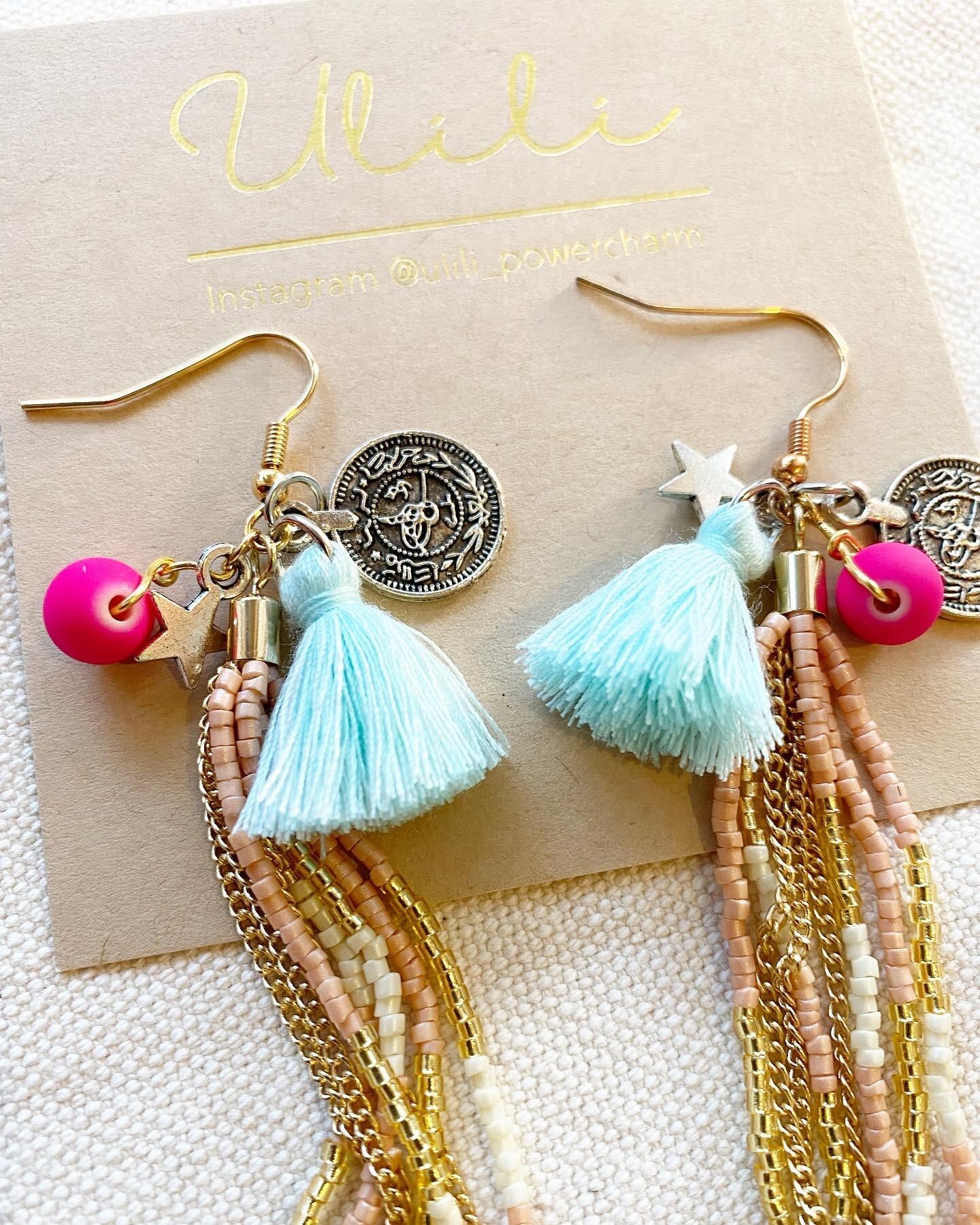 ボヘミアンチャームピアス ▶︎ピンク