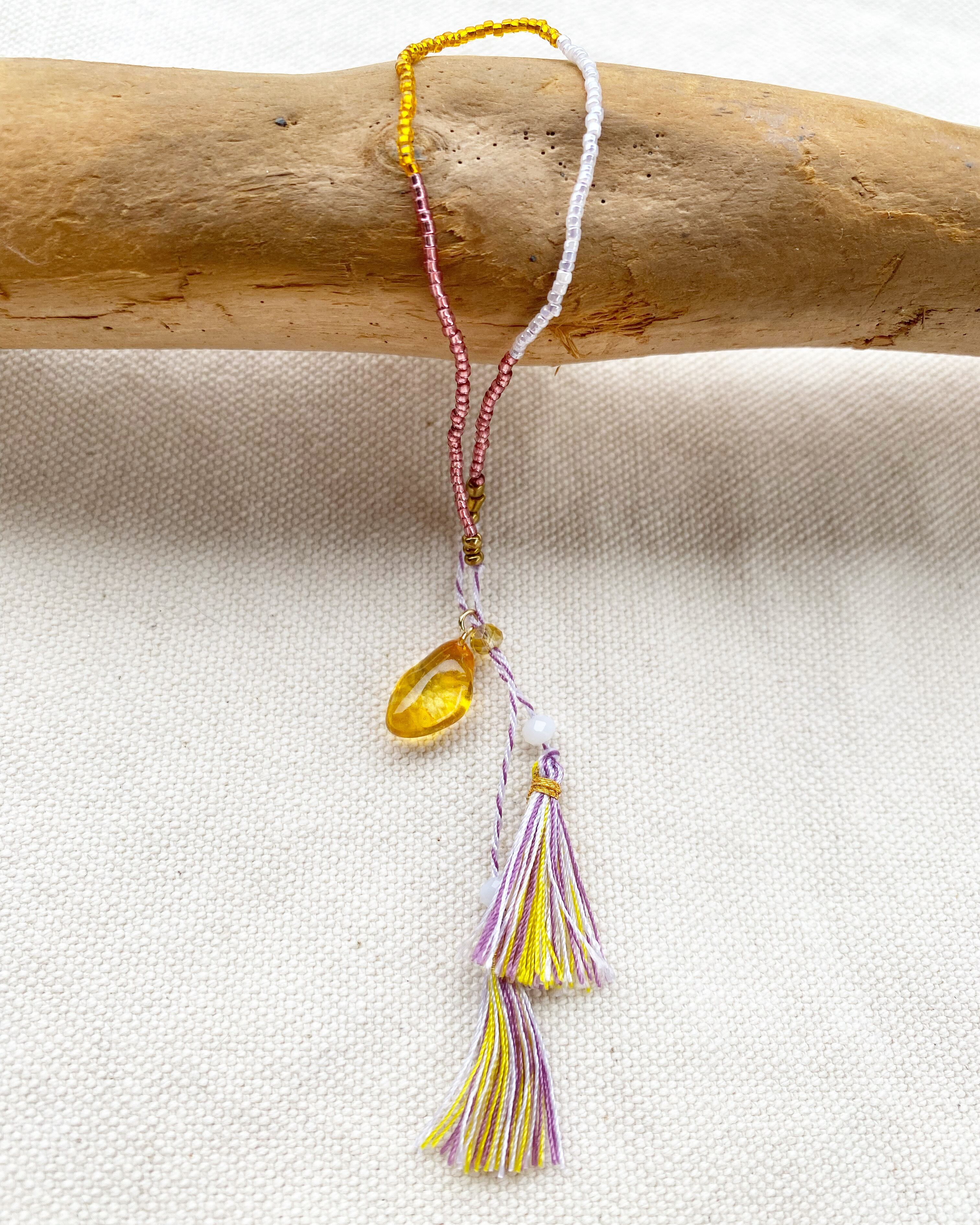 タッセル付きビーズブレスレットはとても細く繊細な商品です。