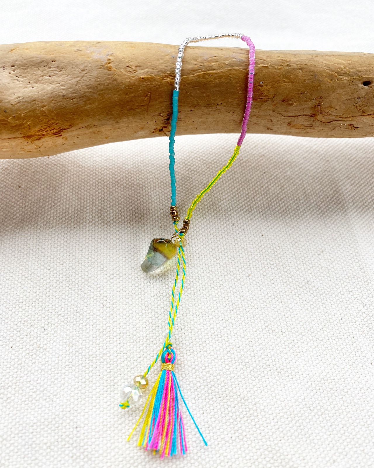 タッセル付きビーズブレスレットはとても細く繊細な商品です。